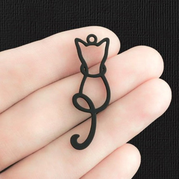 Black cat outline charms, in a zinc alloy metal and enamel.