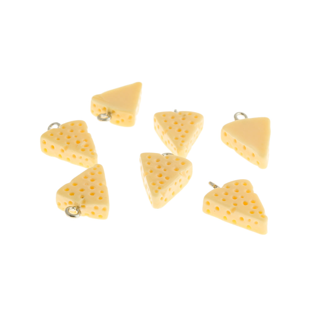 Cheese triangle charms with a silver tone alloy loop, in resin.
