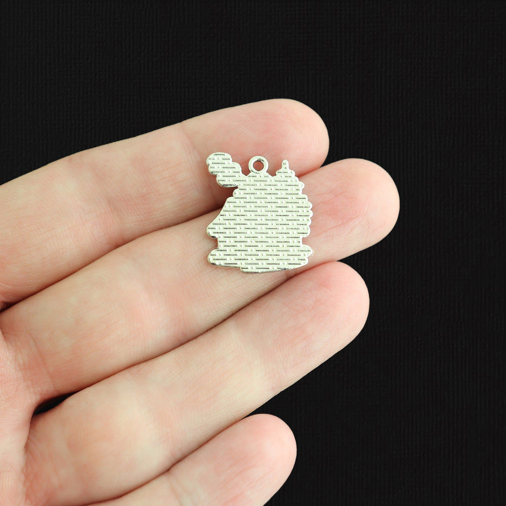 Festive house with a tree silver tone charms, in a zinc alloy metal and enamel.