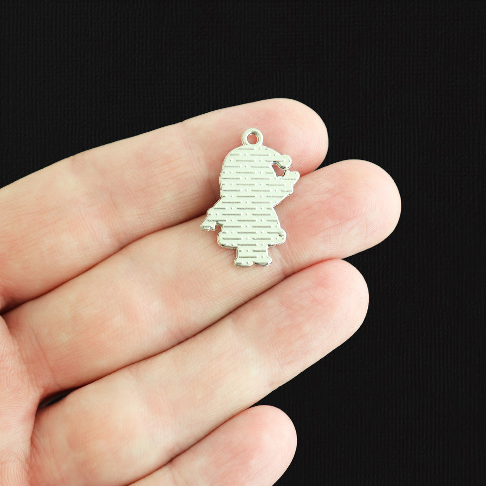 Father Christmas silver tone charms, in a zinc alloy metal and enamel.