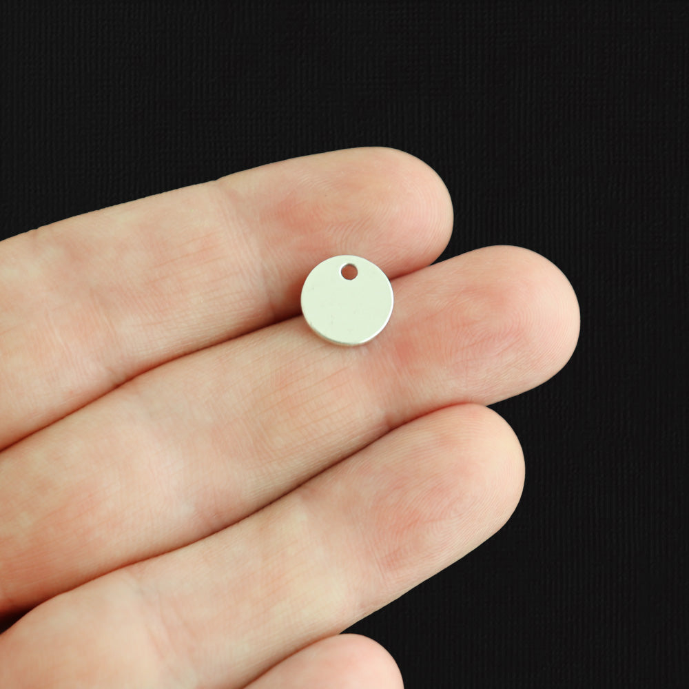 Round disc with cross design antique silver tone charms, in a zinc alloy metal.