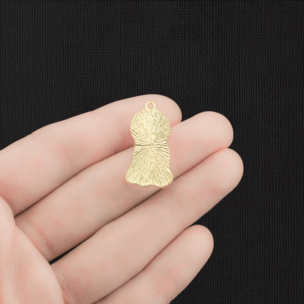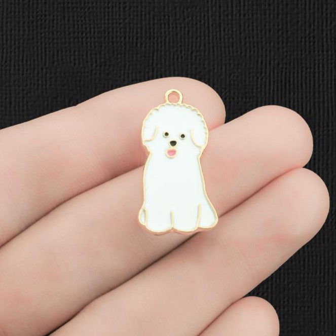 Fluffy white dog gold tone charms, in a zinc alloy metal and enamel.