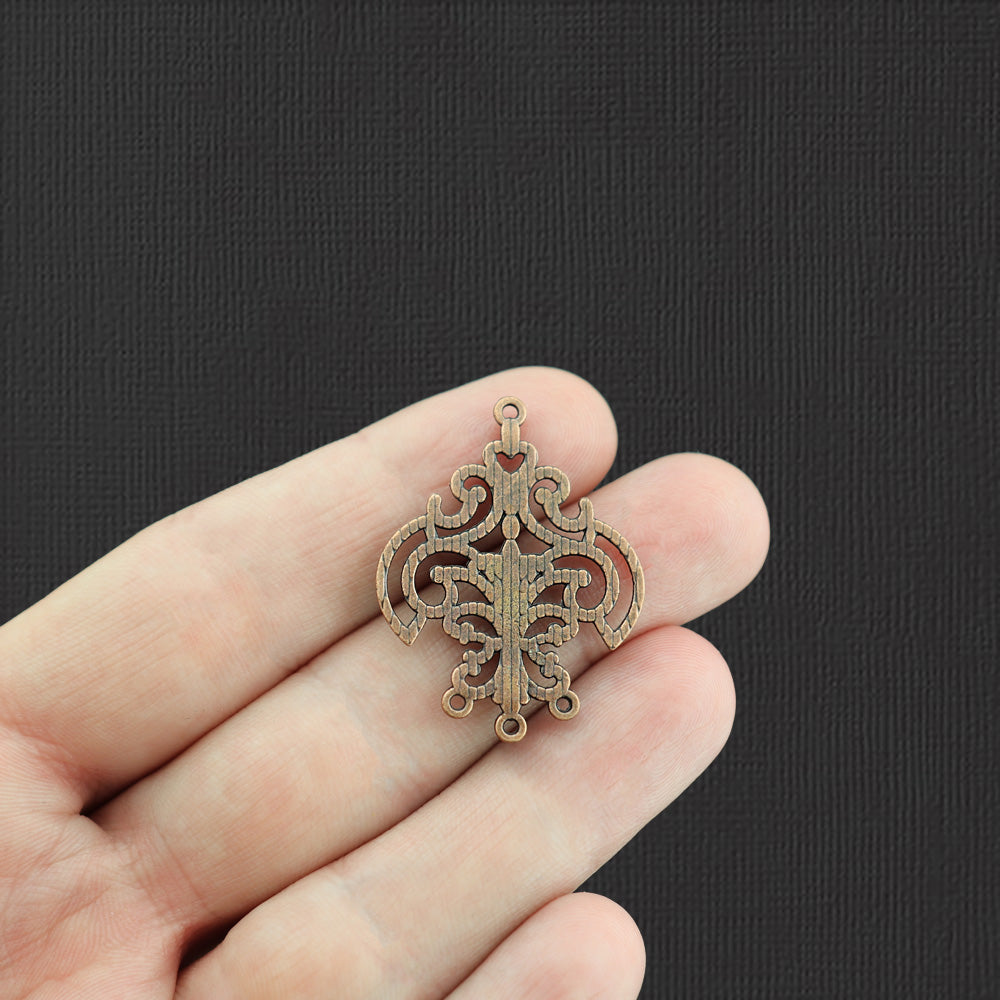 Filigree connector antique copper tone charms, in a zinc alloy metal.