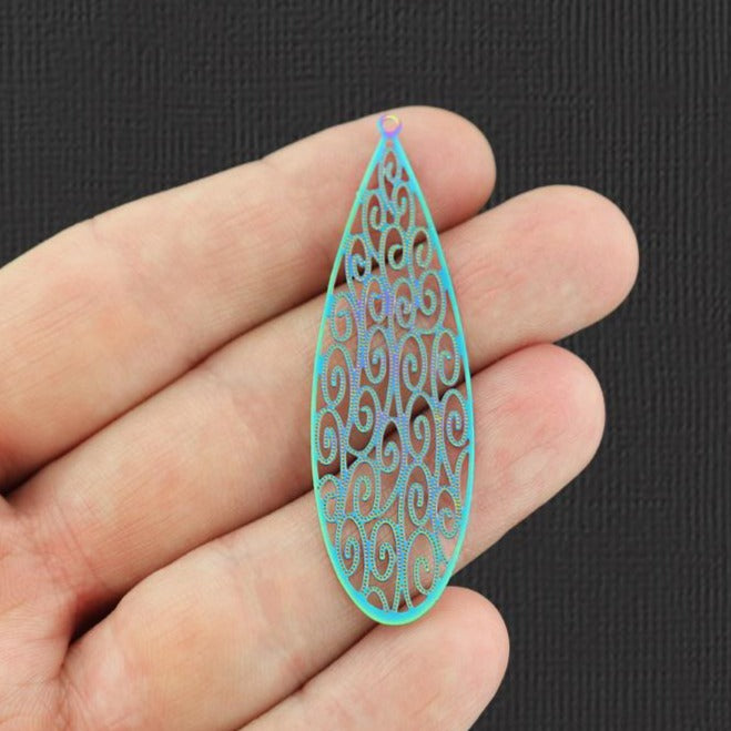 Filigree lace drop electroplated rainbow stainless steel charms.