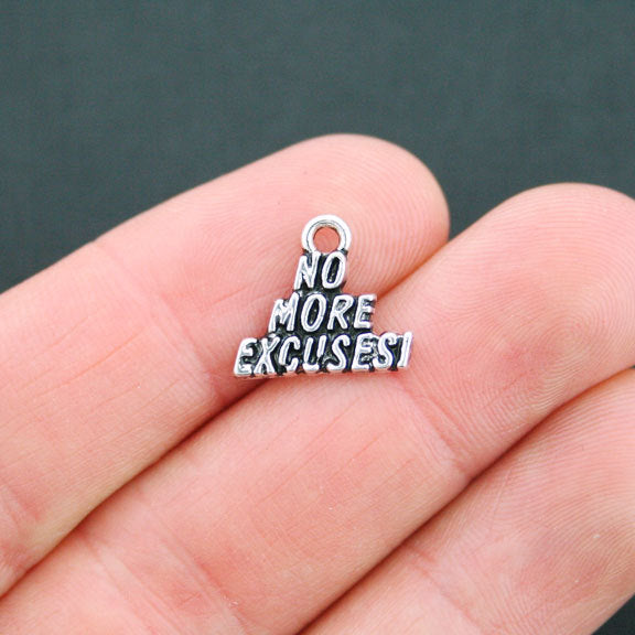 "No more excuses!" antique silver tone charms, in a zinc alloy metal.