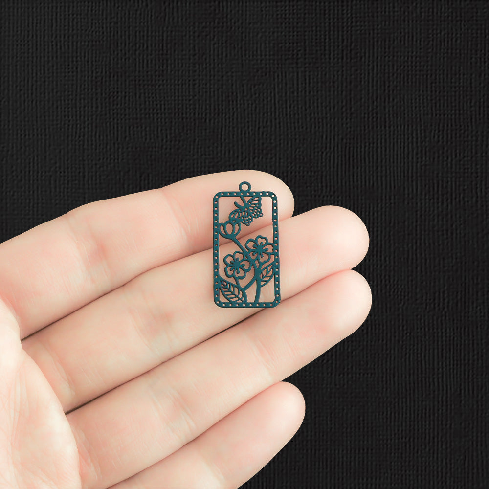 Rectangle with flowers and butterfly charms in enamel and 430 stainless steel.