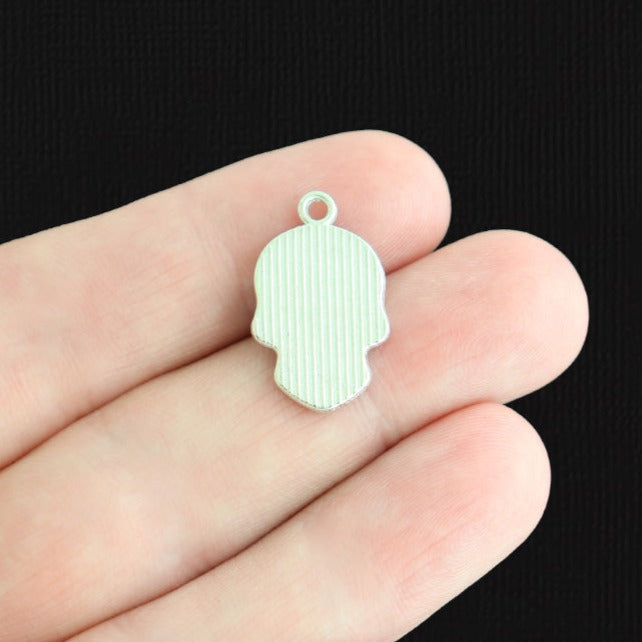 Flower pattern skull silver tone charms, in a zinc alloy metal and enamel.