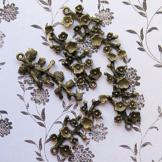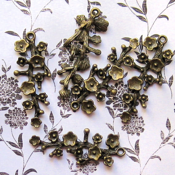 Flower branch antique bronze tone charms, in a zinc alloy metal.