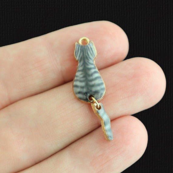 Grey kitten charms, in a zinc alloy metal and enamel with a hinged tail.