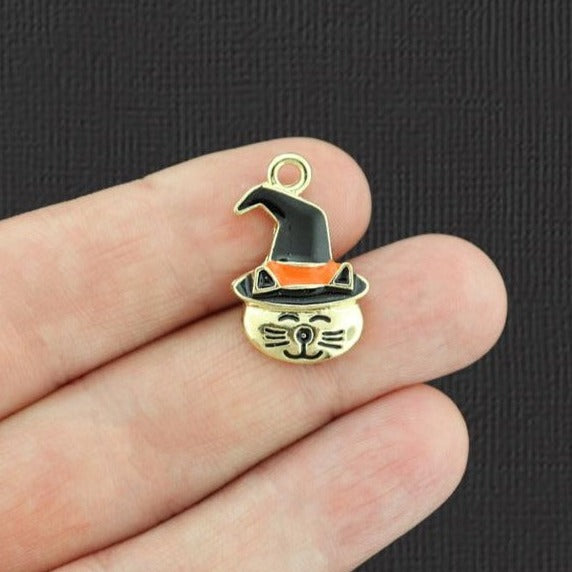 Witch hat cat charms in zinc alloy and enamel.