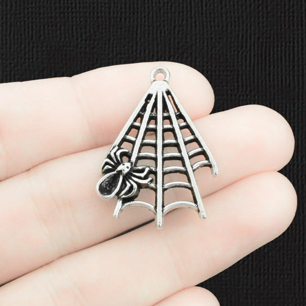 Spider web antique silver tone charms, in a zinc alloy metal.