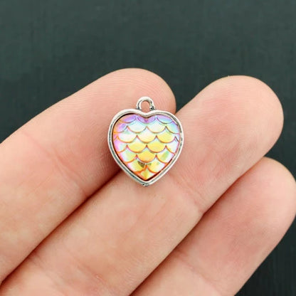 Pink and gold heart mermaid scale antique silver tone zinc alloy and resin charms.