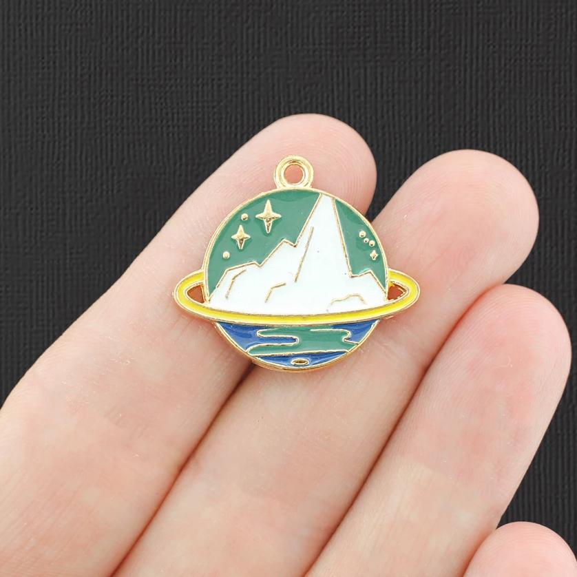 Mountain gold tone charms, in a zinc alloy metal and enamel.