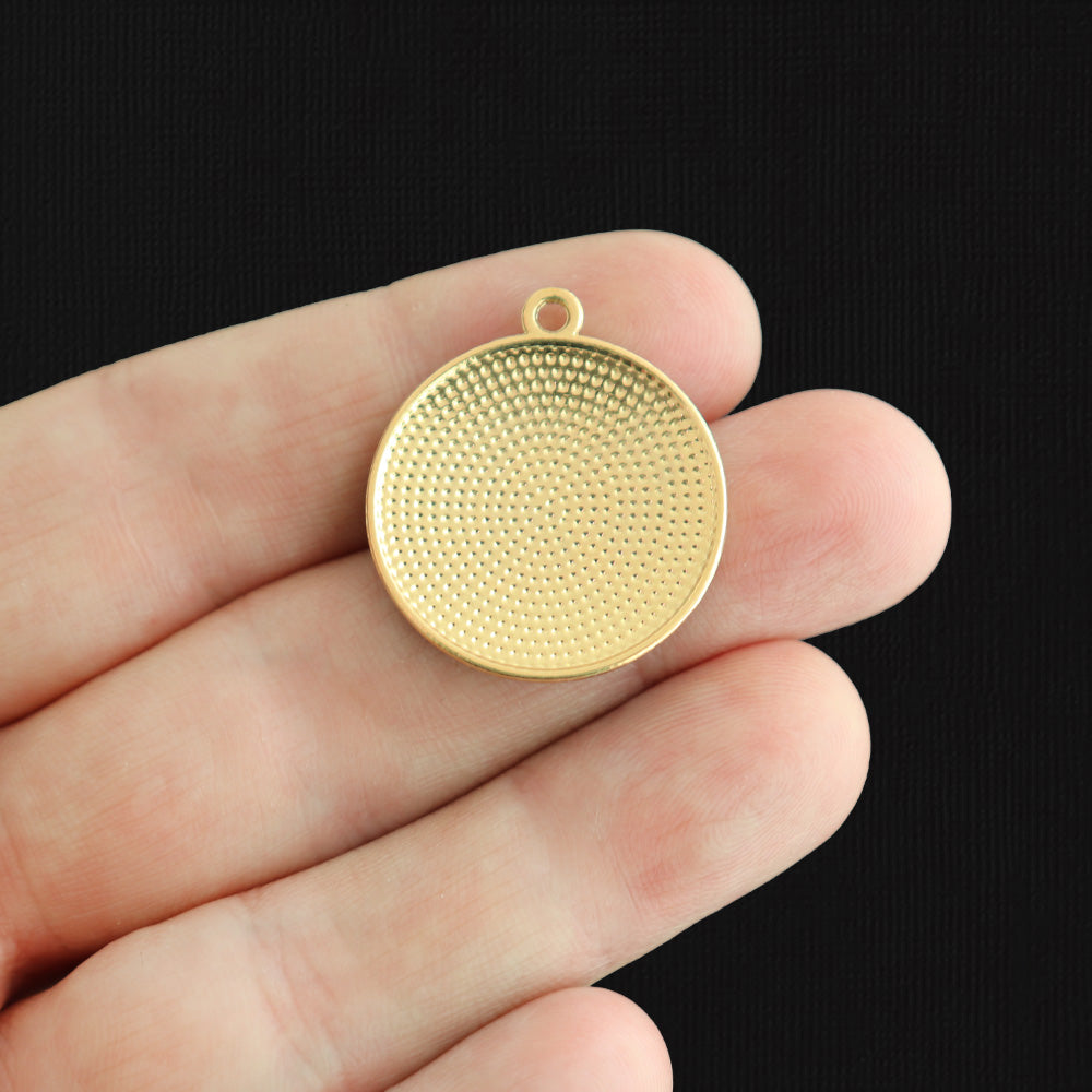 Round pendants with a lily of the valley, mushroom, butterfly and moon design gold tone charms, in a zinc alloy metal and enamel.