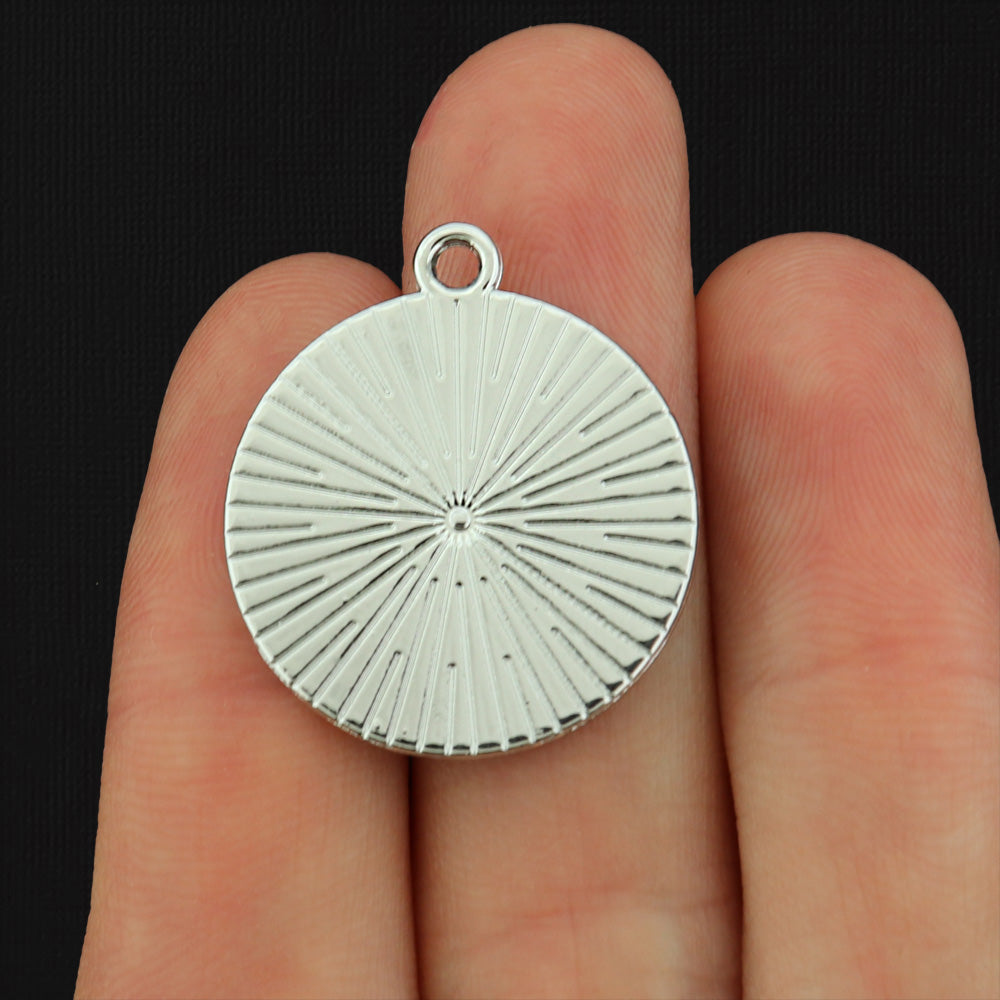 Black ocean wave with moon silver tone charms, in a zinc alloy metal and enamel.