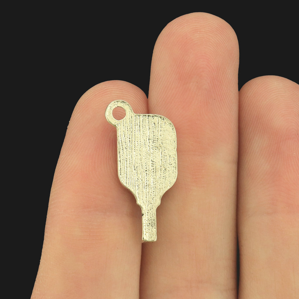 Pickleball antique silver tone charms, finished with grey enamel. Perfect for the pickle ball pro!