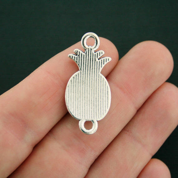 Pineapple antique silver tone connector charms, in a zinc alloy metal.