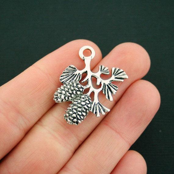 Pine cone branch antique silver tone charms, in a zinc alloy metal.