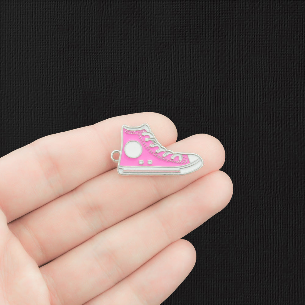 High top sneaker silver tone charms, in a zinc alloy metal and enamel.