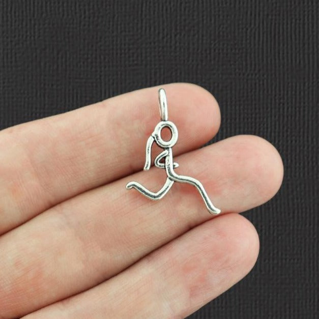 Runner stick person antique silver tone charms, in a zinc alloy.