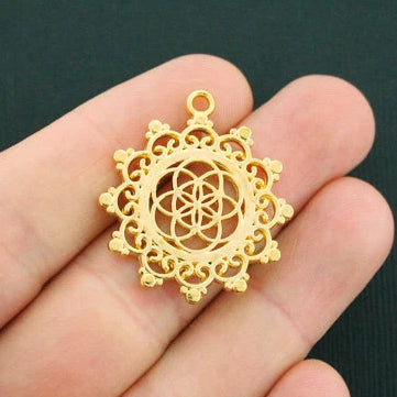 The "Seed of Life" flower antique gold tone charms, in a zinc alloy metal.