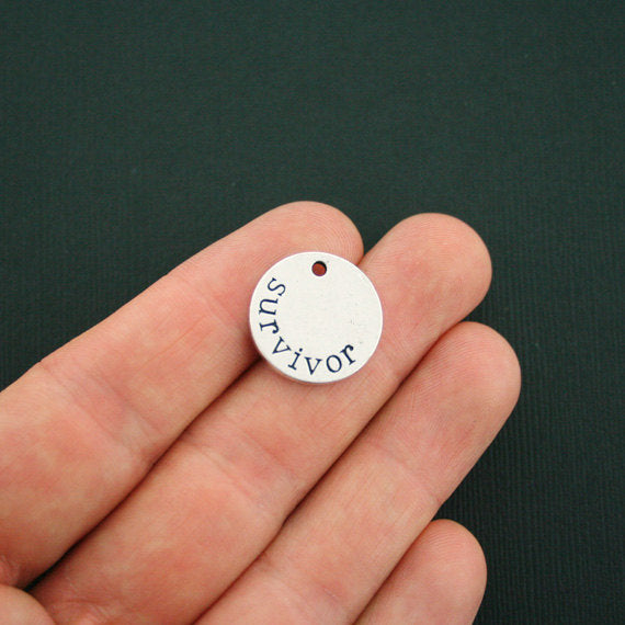 Survivor disk antique silver tone charms, in a zinc alloy metal.