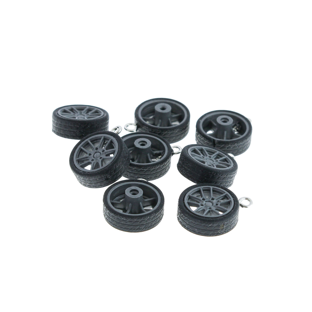 Truck or car tire charms with silver tone alloy loop, in resin.