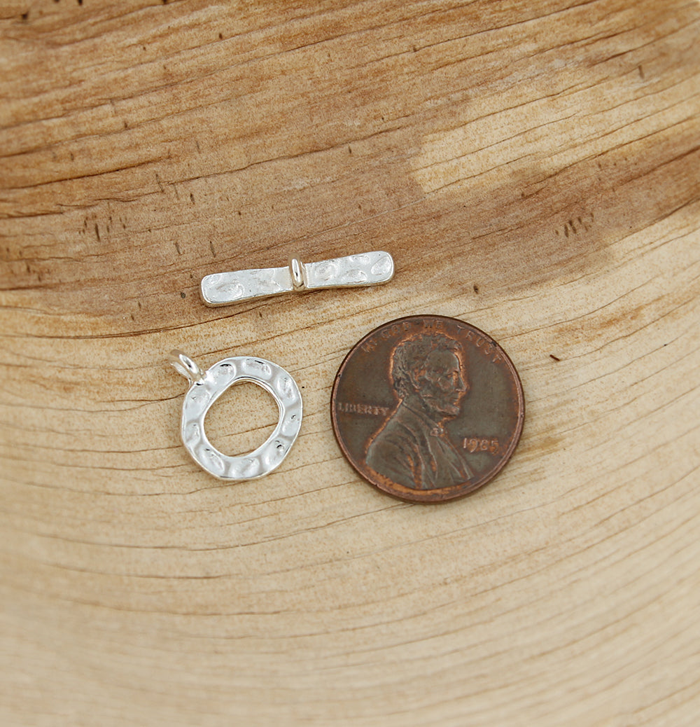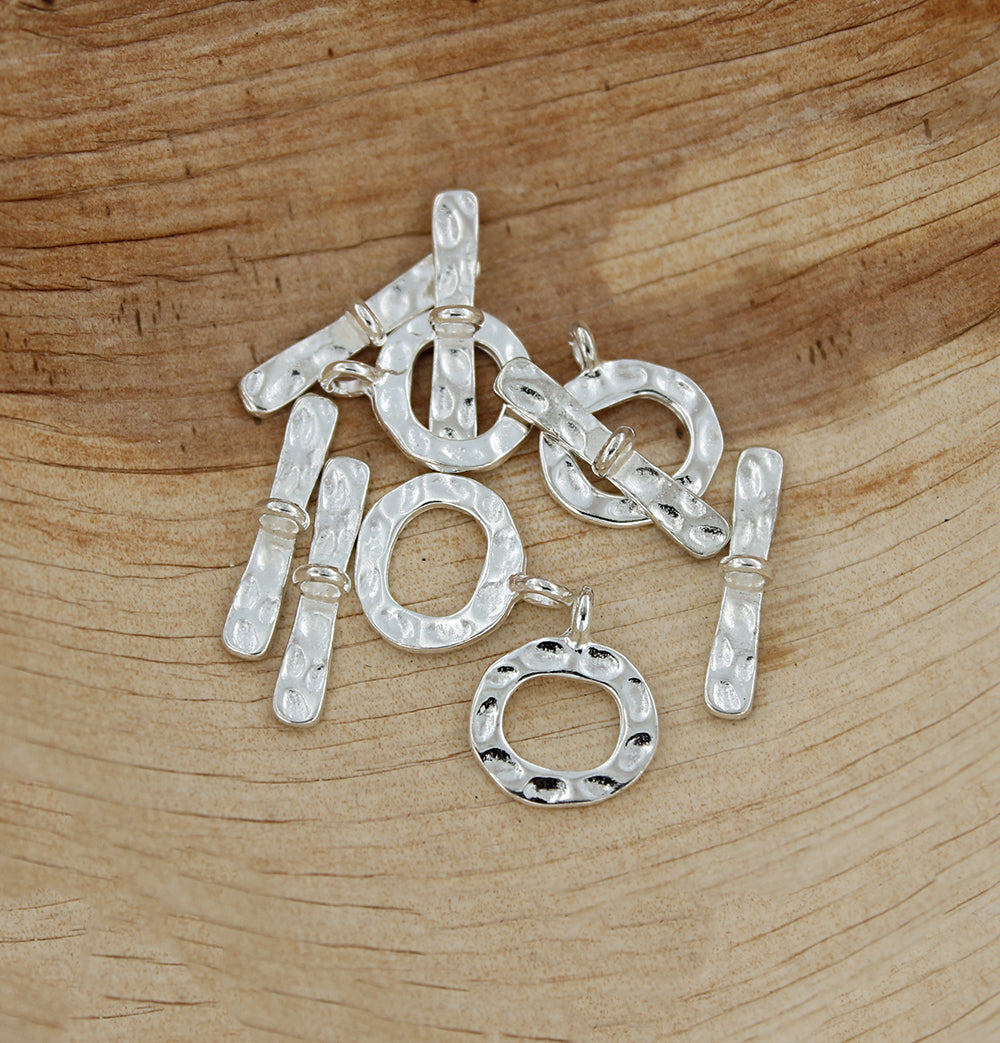 Toggle clasps silver tone, in a zinc alloy metal with a hammered finish.