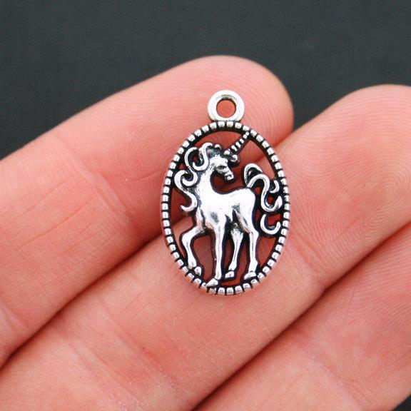 Unicorn antique silver tone charms, in a zinc alloy metal.