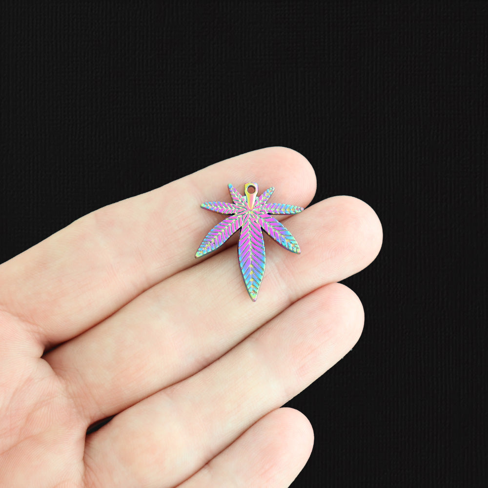 Marijuana leaf rainbow electroplated charms, in zinc alloy metal.