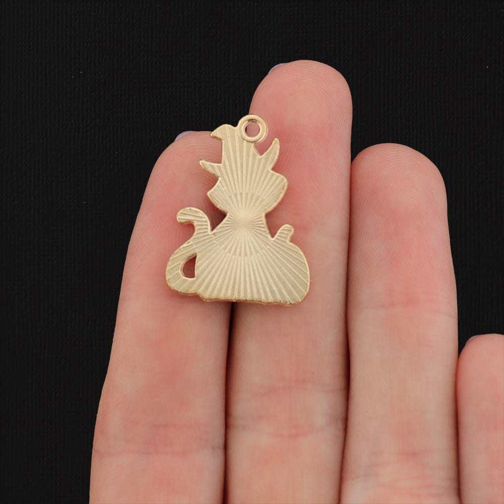 Black cat with witch hat and pumpkin gold tone charms, in a zinc alloy metal and enamel.