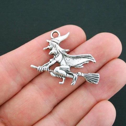 Witch on a broomstick antique silver tone charms, in a zinc alloy metal.