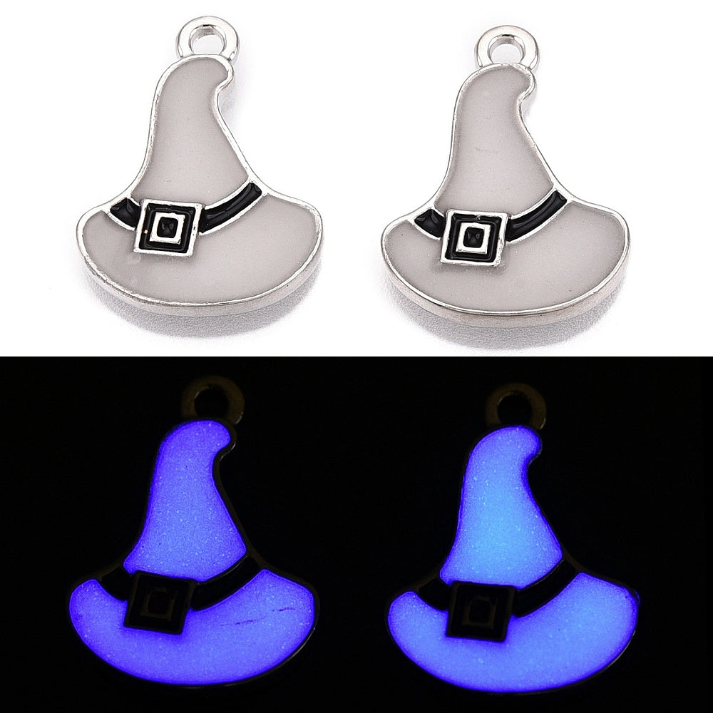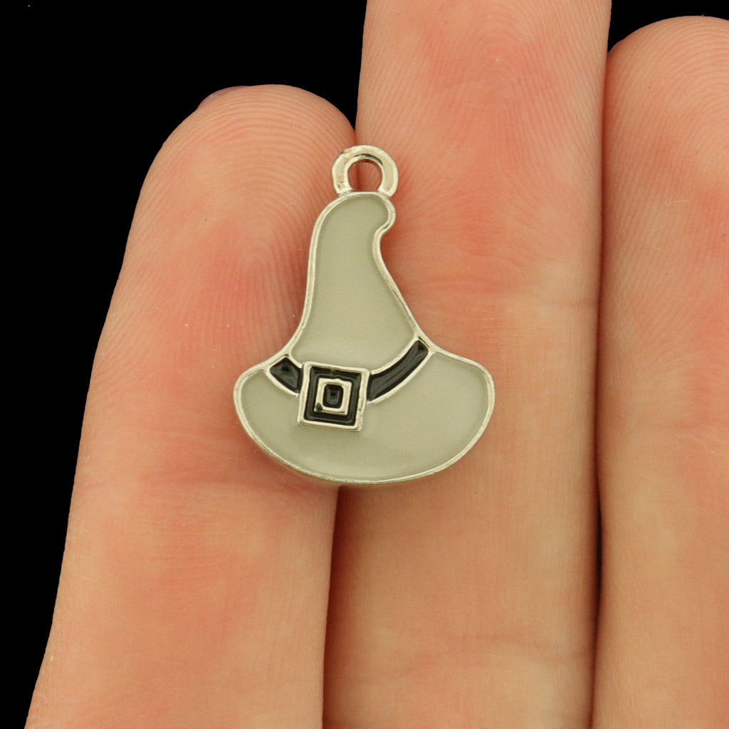 Be the life of the party with these glow in the dark Witch Hat charms. They are made of silver tone alloy and finished with colorful enamel.