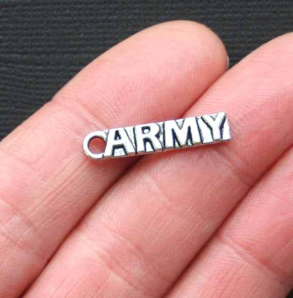 Army tag antique silver tone charms, in a zinc alloy metal.