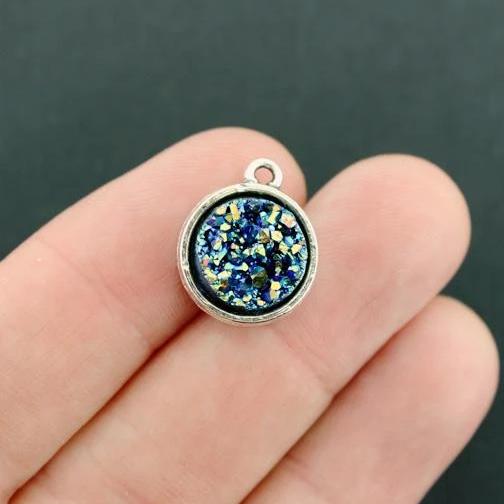 Galaxy blue druzy cabochon charms in zinc alloy and resin.