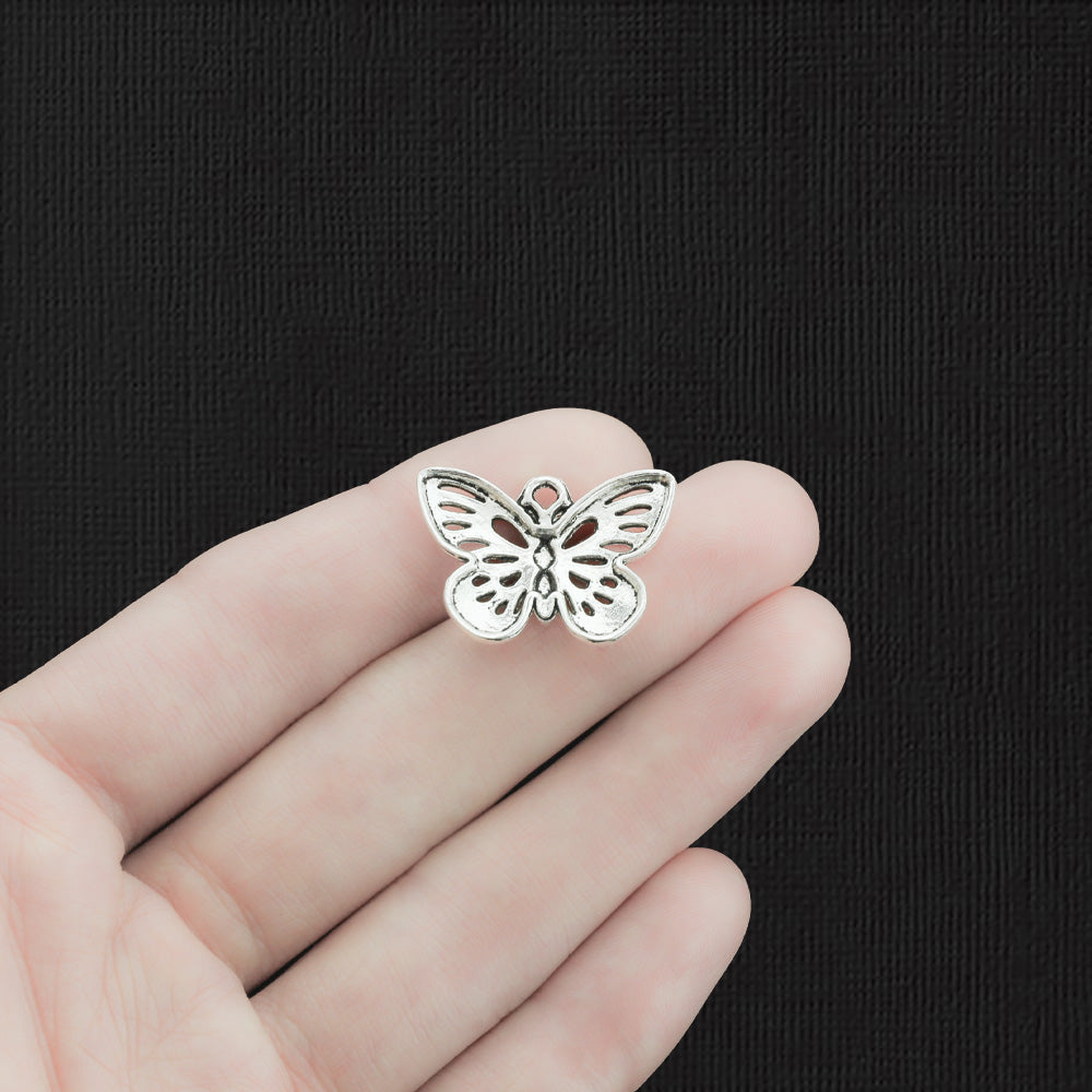Butterfly antique silver tone charms, in a zinc alloy metal.