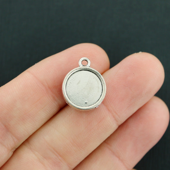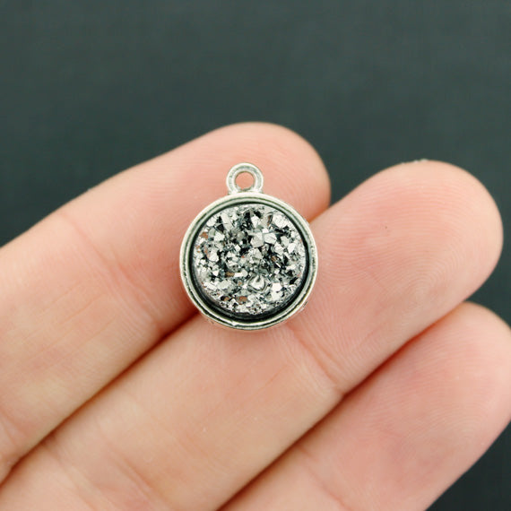 Smoky silver druzy cabochon charms in zinc alloy and resin.