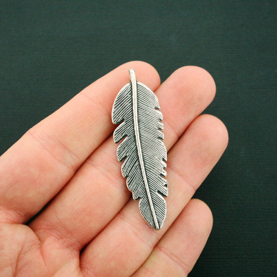 Feather antique silver tone charms, in a zinc alloy metal.