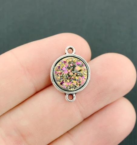 Gold and hot pink connector druzy cabochon charms in zinc alloy and resin.