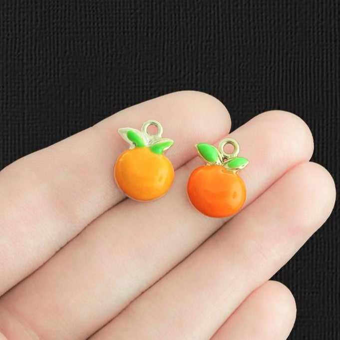 Oranges gold tone charms, in a zinc alloy metal and enamel.