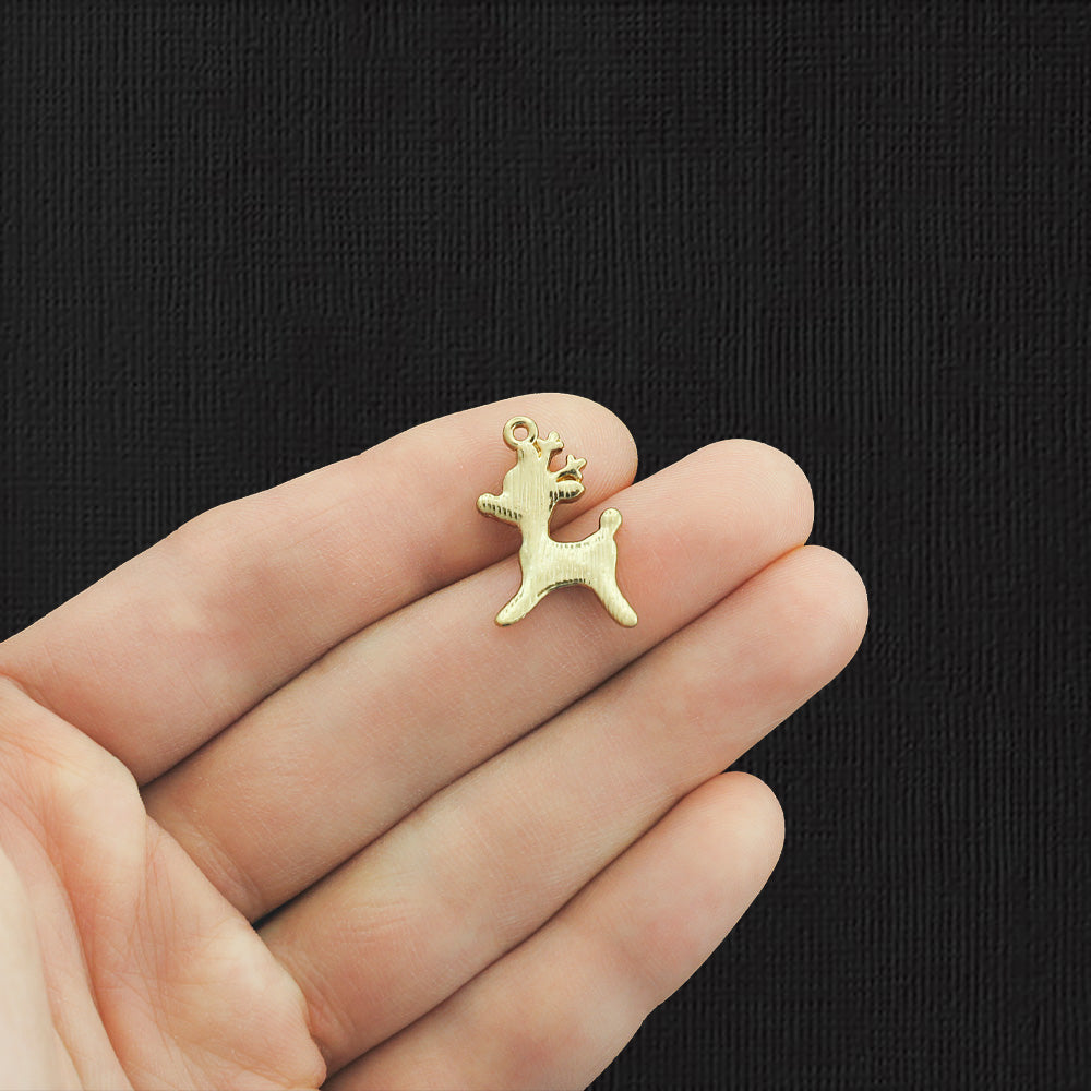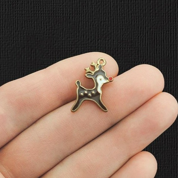 Reindeer gold tone charms, in a zinc alloy metal and enamel.