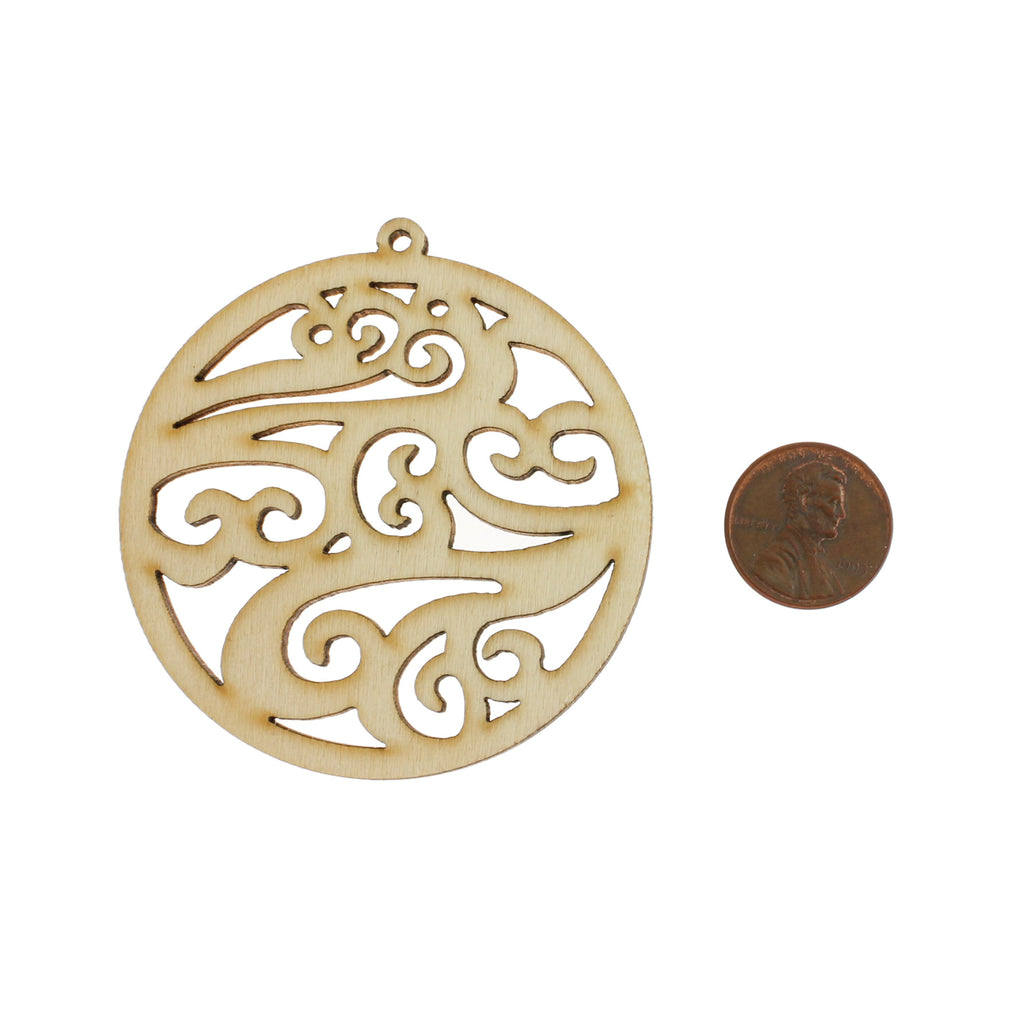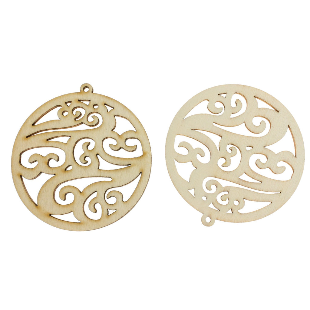 Filigree round natural wood charms. Unfinished for a natural look, or ready for your personal touch - they're also perfect for oil diffuser jewelry!