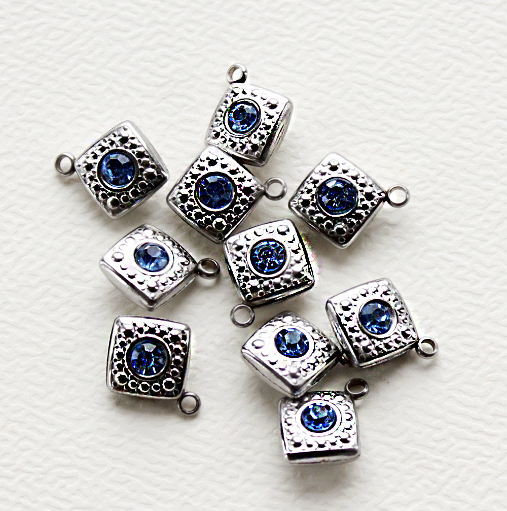 Looking for a little bling to finish up a bracelet or necklace? These stainless steel charm pendants are beautiful! They are two sided with an inset rhinestone on each side... take a peek at the second picture for sizing next to a penny! Choose from turquoise or sapphire blue!
