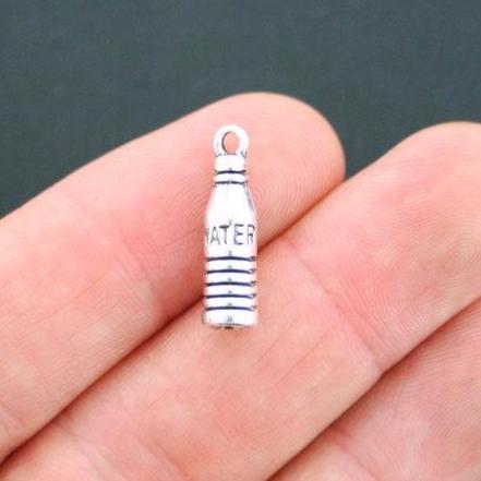 Water bottle antique silver tone charms, in a zinc alloy metal.