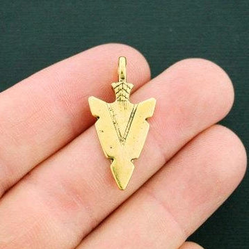 Arrow head antique gold tone charms, in a zinc alloy metal.