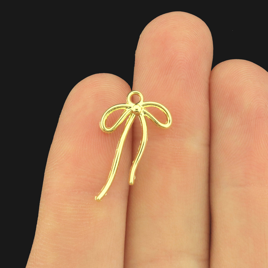 Super tiny and cute ribbon bow charm made of zinc alloy and finished in either gold or silver tone!