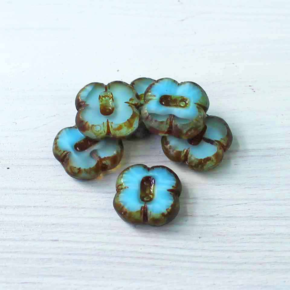 Blue Czech pressed glass beads in a beautiful 12mm Diasy flower shape, with a Picasso finish. Stunning and elegant in any beaded creation!