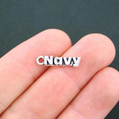 Navy antique silver tone charms, in a zinc alloy metal.