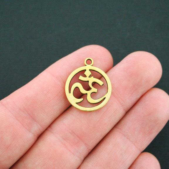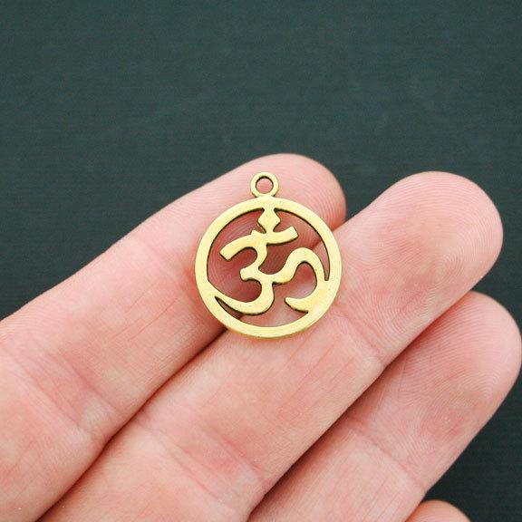 Om circle antique gold tone charms, in a zinc alloy metal.