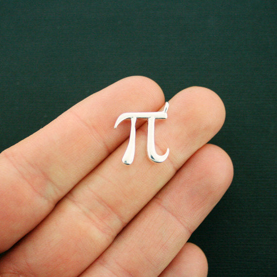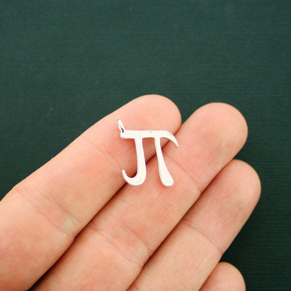 Pi symbol antique silver tone charms, in a zinc alloy metal.